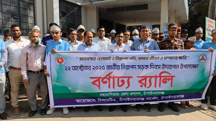 বুধবার (২২ অক্টোবর) সকালে চাঁপাইনবাবগঞ্জ বাংলাদেশ রোড ট্রান্সপোর্ট অর্থরিটি (বিআরটিএ) সার্কেল’র আয়োজনে জেলা প্রশাসকের সার্বিক সহযোগিতায় ডিসি অফিসের কার্যালয় চত্ত্বর থেকে বেলুন উড়িয়ে দিবসের সূচনা করে (বিআরটিএ)। এরপরই একটি বর্ণাঢ্য র্যালি জেলা শহরের গুরুত্বপূর্ণ সড়ক প্রদক্ষিণ শেষে একই স্থানে শেষ হয়। পরে জেলা প্রশাসকের সম্মেলন কক্ষে আলোচনা সভা অনুষ্ঠিত হয়।