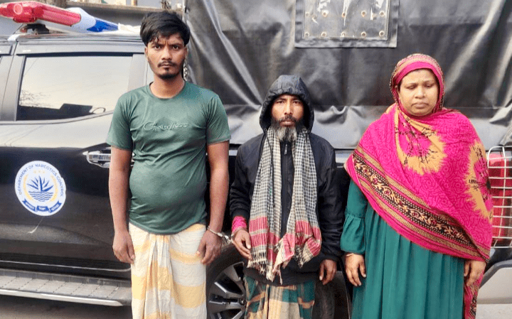 গ্রেফতারকৃতরা হলেন— গোমস্তাপুর থানাধীন সাদেকুল ইসলাম ফিটুর স্ত্রী মোসা: সুলেখা বেগম (৪১), সুলেখা বেগমের স্বামী সাদেকুল ইসলাম,