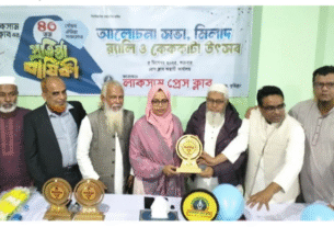 এই সময় সকলের ফুলেল শুভেচ্ছায় সিক্ত হন রাহিদুল ইসলাম বাবু।