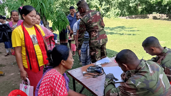 নানিয়ারচর, রাঙ্গামাটি পার্বত্য জেলায় ২২ অক্টোবর ২০২৫, বুধবার, নানিয়ারচর সেনা জোন (১৭ই বেঙ্গল) এর সার্বিক তত্ত্বাবধানে সম্প্রীতি ও উন্নয়ন প্রকল্পের আওতায় অত্র জোনের বাকছড়ি আর্মি ক্যাম্পের আওতাধীন জাহানাতলী উচ্চ বিদ্যালয় মাঠ প্রাঙ্গণে বিনামূল্যে চিকিৎসা সেবা ও ঔষধ বিতরণ কর্মসূচির অনুষ্ঠিত হয়েছে।