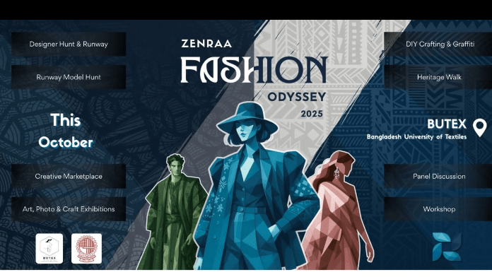 বাংলাদেশ টেক্সটাইল বিশ্ববিদ্যালয়ে (বুটেক্স) আগামী ২৫ অক্টোবর (শনিবার) অনুষ্ঠিত হতে যাচ্ছে ‘জেনরা ফ্যাশন ওডিসি–২০২৫: ক্যাম্পাস এডিশন’। আয়োজনটি ফ্যাশন ব্র্যান্ড জেনরা’র উদ্যোগে এবং বুটেক্স ফ্যাশন সোসাইটি’র সহ-আয়োজনে অনুষ্ঠিত হবে। এ ফ্যাশন আয়োজনে দেশের তরুণ শিক্ষার্থী ও নবীন ডিজাইনাররা সৃজনশীলতা, উদ্ভাবনী চিন্তাভাবনা ও ডিজাইনিং দক্ষতা প্রদর্শনের সুযোগ পাবেন।