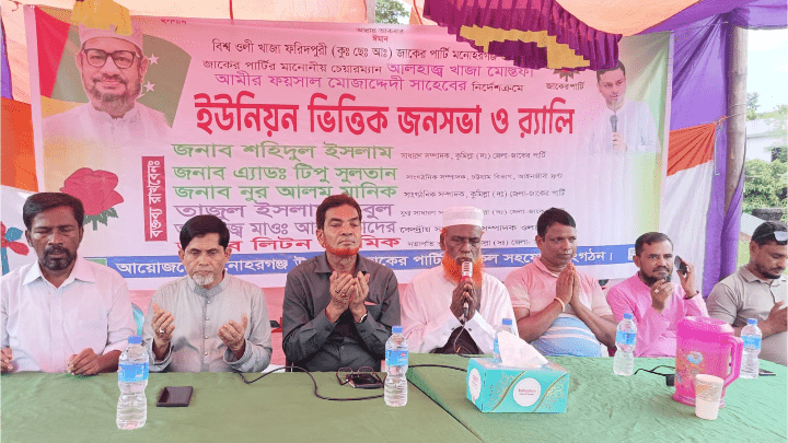 এসময় আরো উপস্থিত ছিলেন লাকসাম পৌরসভা ৬নং ওয়ার্ড সভাপতি ইমান আলি উপজেলা সাধারণ সম্পাদক মোঃ সামিম। আঃ কাদের আঃ মালেক ও অন্যান্ন নেতৃবৃন্দ। হাফেজ মাওলানা আঃ কাদের সাহেব দেশও জাতির কল্যান কামনা করে মোনাজাত প্রদান করেন এবং জাতির এ ক্লান্তি লগ্নে সকল মানুষকে জাকের পার্টির পতাকাতলে ঐক্যবদ্ধ হওয়ার আহ্বান জানান।