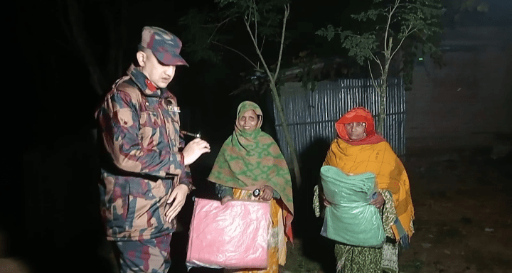 চাঁপাইনবাবগঞ্জে বিগত কয়েকদিন যাবৎ উত্তরবঙ্গের কয়েকটি জেলায় শীতের তীব্রতা আশঙ্কাজনকহারে বৃদ্ধি পায় এবং তাপমাত্রা ৮-৯ ডিগ্রিতে নেমে আসে। এতে সাধারণ জনগণ বিশেষ করে দুঃস্থ, ছিন্নমুল ও অসহায় ব্যক্তিবর্গ প্রচন্ড দুর্দশার মধ্যে পড়ে এবং তাদের স্বাভাবিক জীবনযাত্রা ব্যাহত হয়। সেই উপলব্ধি থেকেই গতকাল ১১ জানুয়ারি অধিনায়ক, মহানন্দা ব্যাটালিয়ন (৫৯ বিজিবি) নিজ উদ্যোগে লোক চক্ষুর অন্তরালে বিনা প্রচারণায় রাতের আঁধারে চাঁপাইনবাবগঞ্জ জেলাধীন শিবগঞ্জ উপজেলার দায়িত্বপূর্ণ সীমান্ত এলাকায় গমন করেন এবং শীতার্ত অসহায় মানুষের পাশে স্ব-হস্তে উষ্ণতার প্রতীকী স্বরূপ কম্বল নিয়ে দ্বারে দ্বারে হাজির হন। তাঁর এ মানবিকতায় সুবিধাভোগীরা আবেগ-আপ্লুত ও আশ্চার্যান্বিত হয়ে পড়েন এবং বিজিবি’র প্রতি গভীর কৃতজ্ঞতা প্রকাশ করেন। মহানন্দা ব্যাটালিয়ন (৫৯ বিজিবি) অধিনায়কের এই উদার ও জনহিতকর কর্মকান্ডে বিজিবি’র ভাবমূর্তি বেসামরিক অঙ্গনে বহুল প্রশংসিত হয়েছে এবং জনমনে আশার আলো সঞ্চার করেছে। মহানন্দা ব্যাটালিয়ন অধিনায়কের মানবদরদী কর্মকান্ডে সমাজের বিত্তবান ও প্রভাবশালীরা উৎসাহিত ও অনুপ্রাণিত হবে বলে সাধারণ জনগণ মনে করছে।
