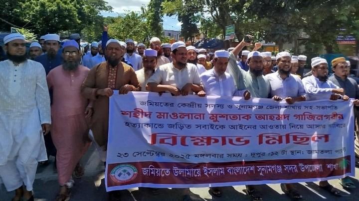জমিয়তে উলামায়ে ইসলাম বাংলাদেশ, সদর উপজেলা শাখার উদ্যোগে শহিদ মাওলানা মুশতাক আহমেদ গাজিনগরীর খুনিদের গ্রেফতার ও বিচারের দাবিতে এক বিক্ষোভ মিছিল অনুষ্ঠিত হয়েছে।