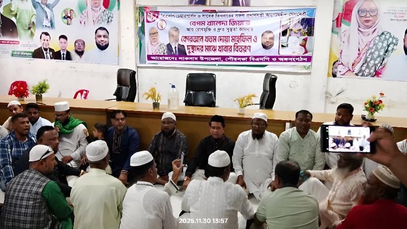 সাবেক প্রধানমন্ত্রী বেগম খালেদা জিয়ার রোগমুক্তি কামনায় বগুড়া শেরপুরে কোরআন খতম ও দোয়া মাহফিল