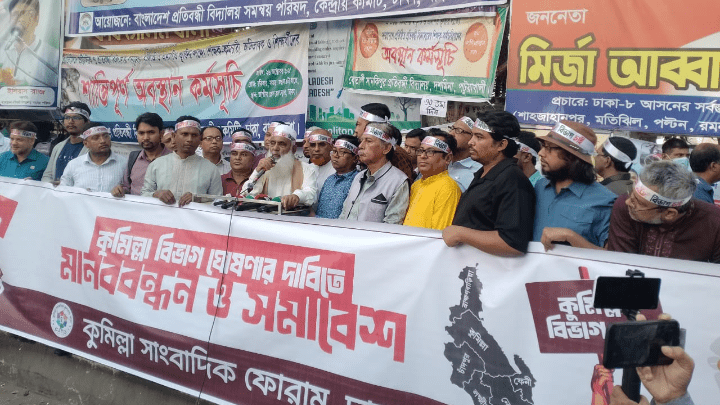 কুমিল্লা বিভাগের দাবিতে ‘কুমিল্লা সাংবাদিক ফোরাম, ঢাকা (সিজেএফডি)’ আয়োজিত সমাবেশ ও মানববন্ধনে বিএনপি চেয়ারপারসনের উপদেষ্টা মনিরুল হক চৌধুরী বলেছেন,আন্দোলনের নতুন রুপরেখা দরকার। তিনি বলেন ‘কুমিল্লা সবসময়ই উন্নয়নবঞ্চনার শিকার। যে ন্যায্য দাবি নিয়ে সাংবাদিকরা রাস্তায় নেমেছেন, তার প্রতি আমি ঐক্যের ডাক দিচ্ছি—এটা কুমিল্লার ইজ্জতের প্রশ্ন। ২৪ নভেম্বর ২০২৫ সোমবার রাজধানীর জাতীয় প্রেস ক্লাবের সামনে এ সমাবেশে […]
