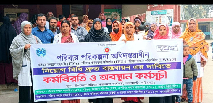 পলাশবাড়ীতে নিয়োগ বিধি দ্রুত বাস্তবায়নের দাবিতে কর্মবিরতি ও অবস্থান কর্মসূচি পালন
