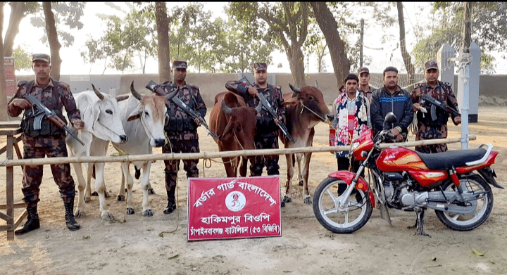 চাঁপাইনবাবগঞ্জ মহানন্দা ব্যাটালিয়ন ৫৩ বিজিবির অভিযানে মোটরসাইকেল ও মোবাইলসহ আটক ২